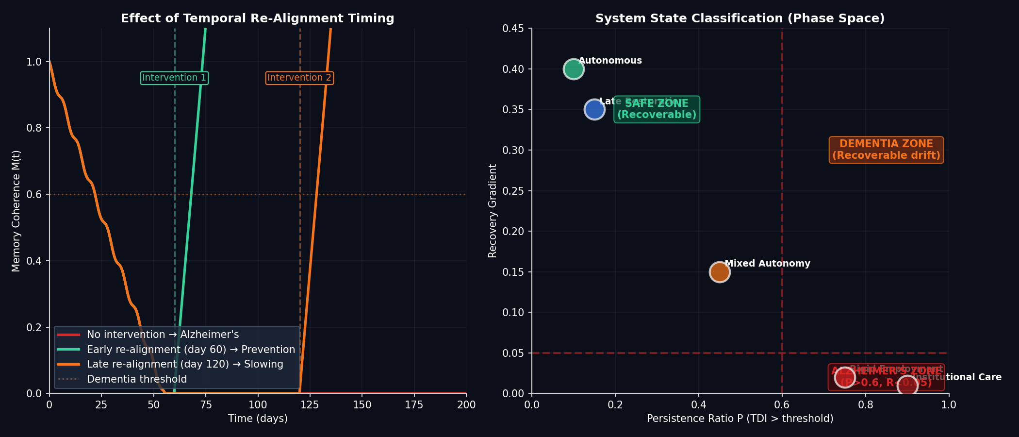 The purpose of this work is therefore not descriptive but preventive: to detect dissonance early, stabilise cognition at the dementia stage, and block the transition into irreversible disease.