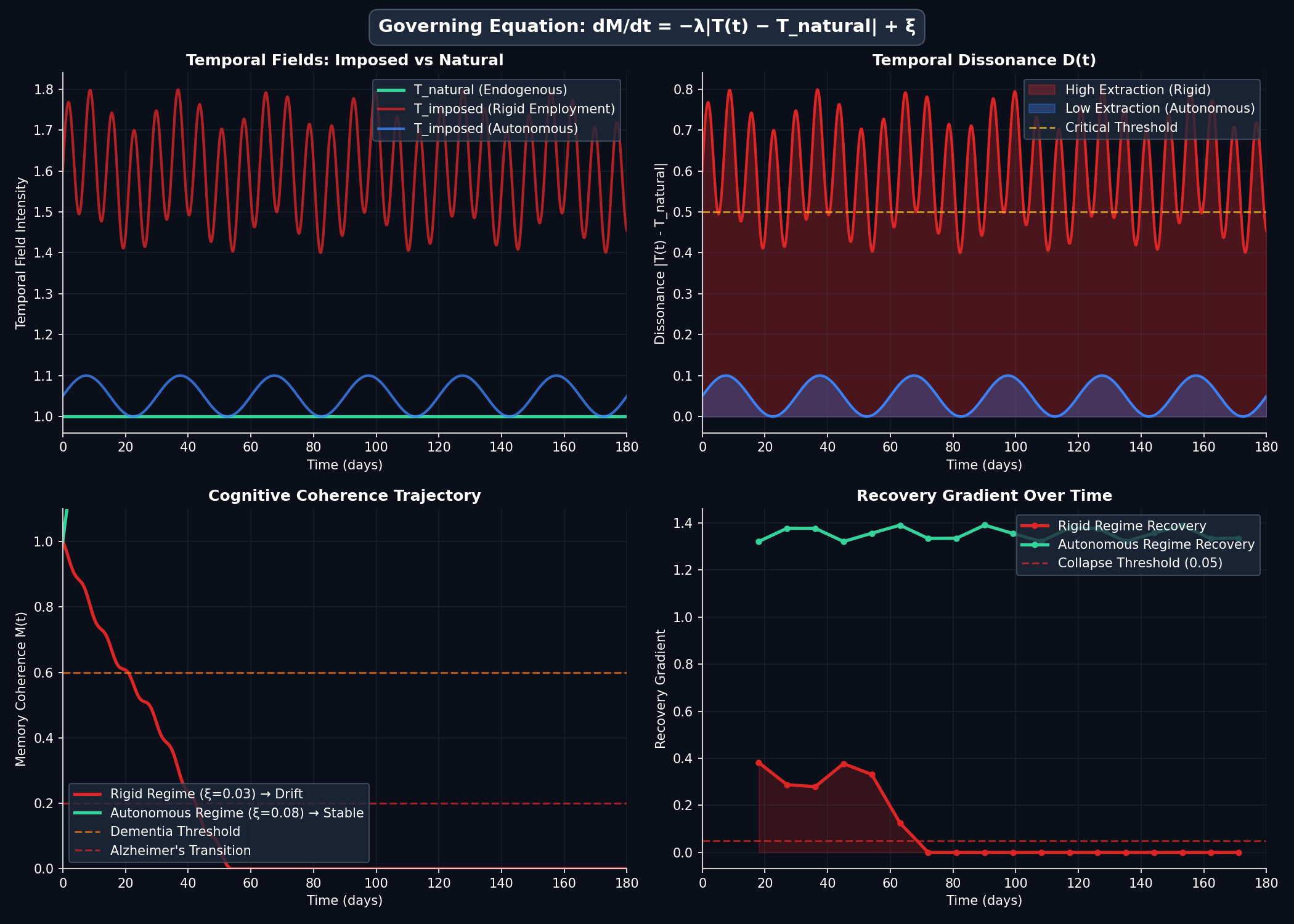 - Dementia is the signal that temporal–cognitive equilibrium has failed.