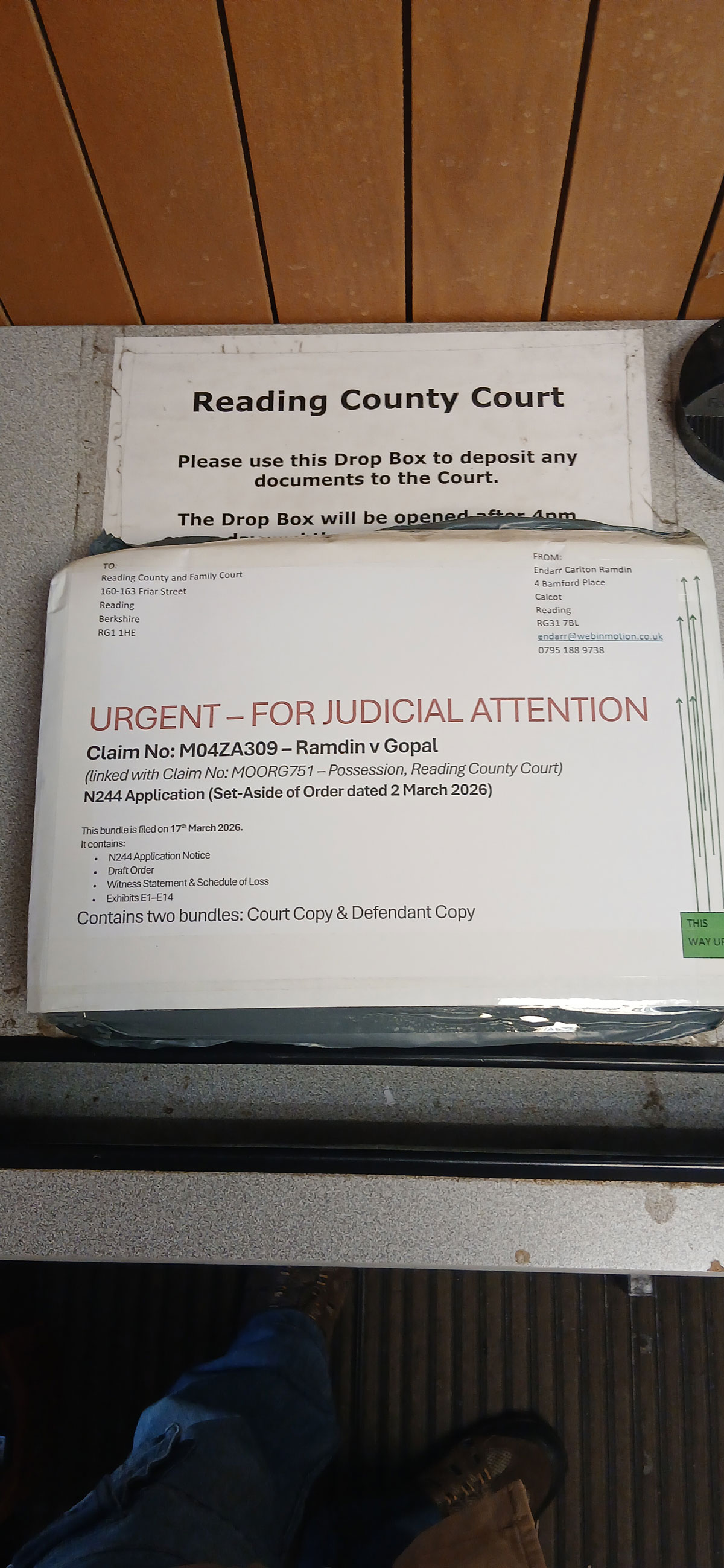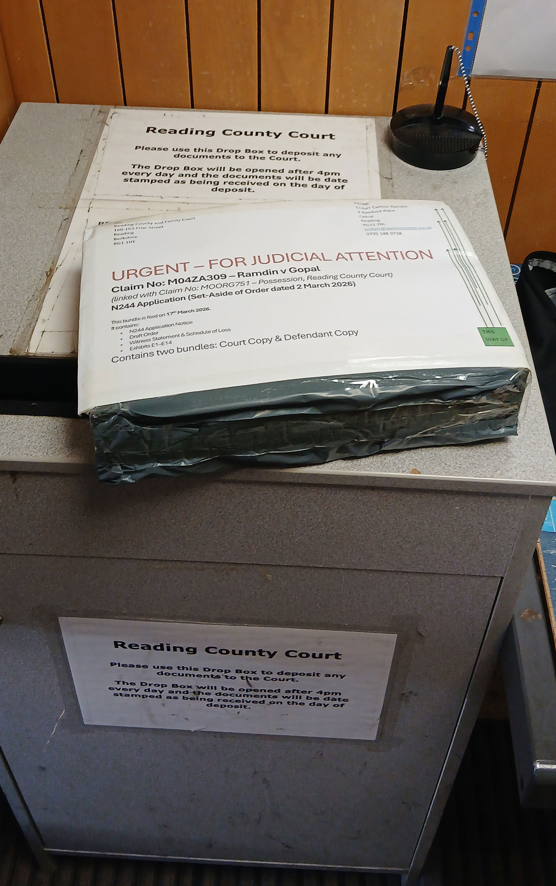 The Applicant had previously filed both N244 applications and N181 Directions Questionnaire material, together with substantial evidential bundles, using the same method of physical delivery. Those filings did not result in procedural engagement or record continuity.